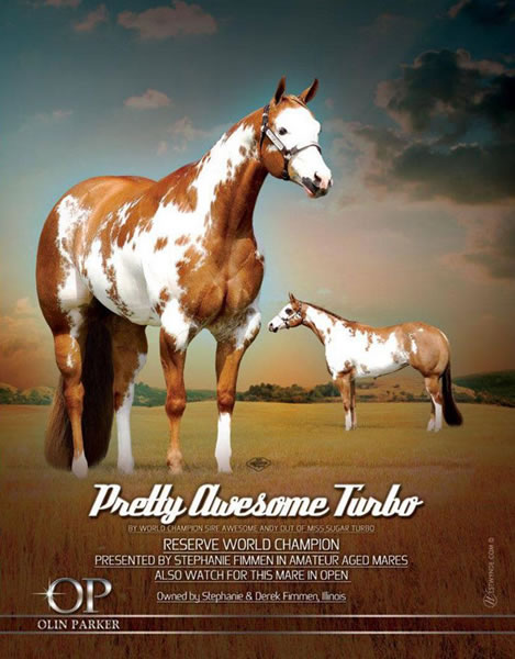 Sired By: Mighty Awesome: APHA's #1 Sire of Halter Horses for the past 5 years, World & Reserve World Champion at Halter,159 Halter Points, Multiple World & Reserve World Champion Sire, APHA Leading Sire by Barlink Macho Man
