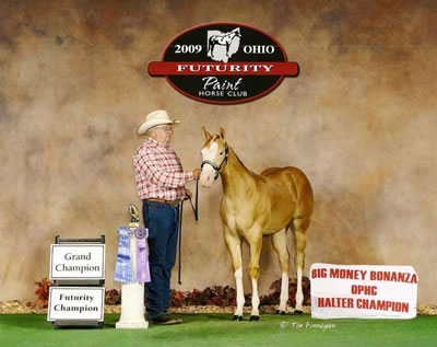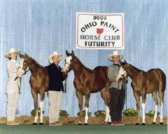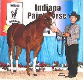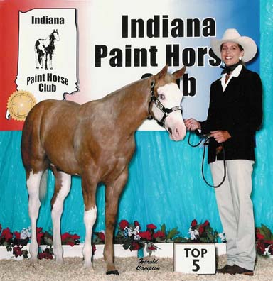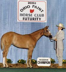 "Count Chocula" 2004 Palomino Overo Colt Awesome Andy X Ima Class E Chic Owned by Lynette Whitaker, Indiana Winner Non-Pro Weanling Colts Michigan Futurity? Reserve Champion Open Weanling Colts Michigan Futurity? Reserve Futurity Champion (tied) Open Sr Weanling Colts Ohio Futurity? 3rd Non-Pro Weanling Colts Ohio Futurity? 3rd (tied, moved to 5th) Non-Pro Sr Colts Indiana Futurity? 4th (tied, moved to 5th) Open Sr Colts Indiana Futurity?