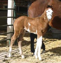 "Looks Can Thrill" 2006 Chestnut Overo Colt Awesome Andy X Wall Street Queen (AQHA)? Winner Ontario Paint Horse Futurity Junior Weanling Colts (First Under all 4 Judges)? Winner Ohio Futurity Jr. Weanling Colt? Winner Ohio Futurity SSA Jr. Weanling Colt? Winner Ohio Futurity Non-Pro Jr. Weanling Colt? Ohio Futurity Grand Champion Weanling Colt? Winner New York Open Jr Weanling Colt Futurity? Third NY SSA Weanlings, BFPF Weanling COlts and 5th Non-Pro Weanlings? He was undefeated in the Junior Colt Division