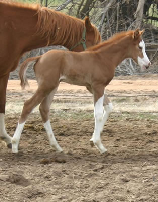 Strangers With Candy - 2007 Sorrel Overo filly by Awesome Andy. Congratulations to Owner, Christy Wright. Watch for them at the futurities.