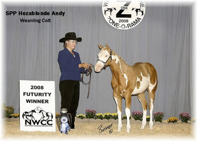 SPP HezaBlonde Andy Paint Idaho Supreme Classic Weanling Colt Futurity, 2nd Overall. Zone One Zone-O-Rama NWCC Futurity, 1st Overall . Alberta Paint Horse Club Canadian Colours Futurity, 1st Overall. Harvest of Colours Weanling Colt Futurity, 1st Overall.