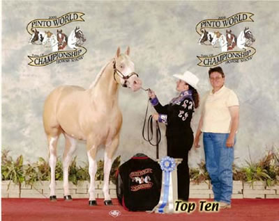 "The Caped Crusader" 2005 Palomino Overo Gelding Awesome Andy X Ima Class E Chic. Owned by Amy Mayer of Wisconsin? Top Ten PtHA World Open and Amateur Yearling Stallions? Open and Amateur Halter Point Earner