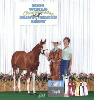 Congratulations to Mary Foreman, Cindy and Jim Anderson on their win in Am. Weanling Geldings at the 2010 APHA World Show! Watch for this great gelding at the shows in 2011.