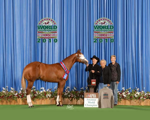 Sire of numerous futurity winners across North America, multiple ROMs, multiple APHA and PTHA World Champions, Top 10 APHA World Horses, Top 5 Congress winners and Honor Roll Horses