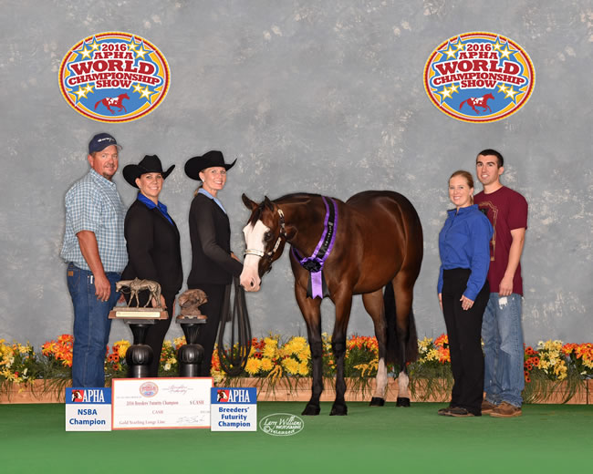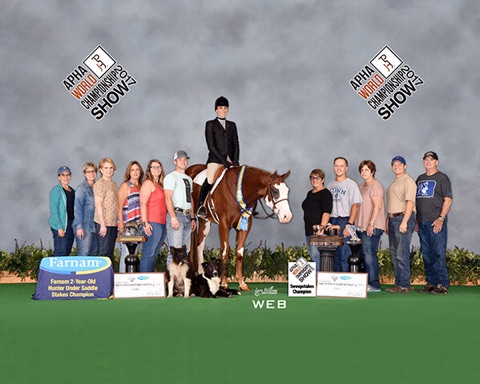 2016 APHA World Show Champion Breeders Trust Gold Yearling Longe Line Futurity. Top 5 Yearling in Hand Trail and Open Yearling Longe Line.