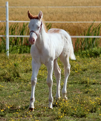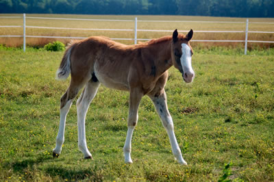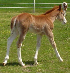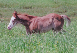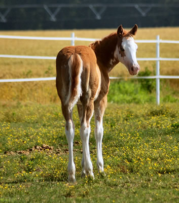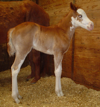 Over Deuced - 2007 Sorrel overo colt (Three Deuces x Catalina Splash). Photo at 3 weeks.