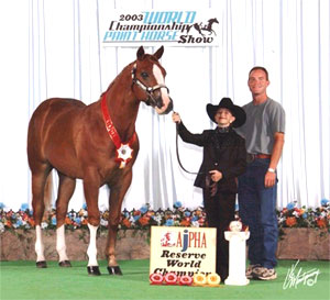 Deuces Delux - 2002 Res. World Champion Am. Weanling Gelding, 2003 Res. World Champion Youth Yearling Gelding.